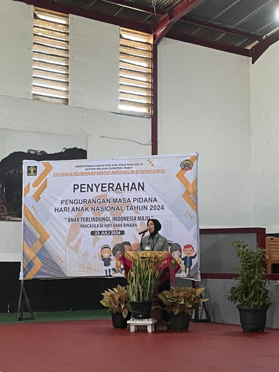 Sarilamak – Lembaga Pemasyarakatan kelas III Suliki Hadiri Peringatan Hari Anak Nasional (HAN) Ke-40 di Lembaga Pemasyarakatan Khusus Anak (LPKA) Payakumbuh, Pada Selasa (23/7/24) bertempat di Aula LPKA Payakumbuh.