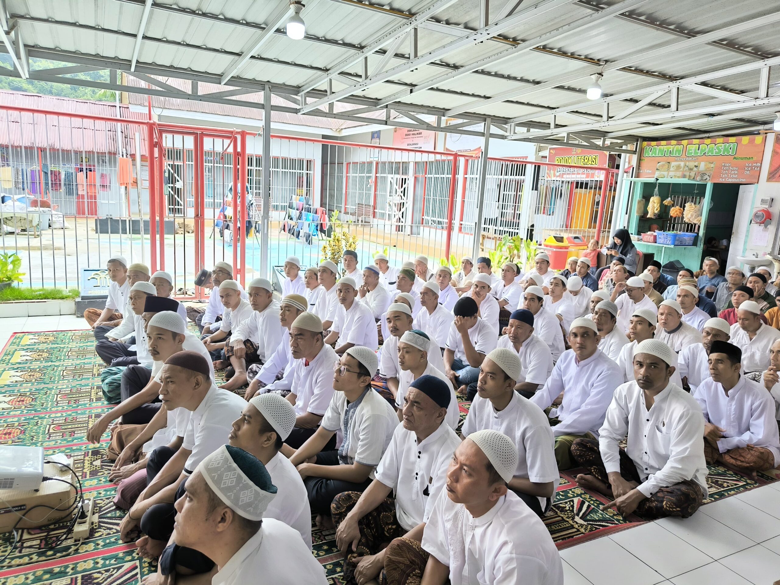 Hadir sebagai penceramah, Ustadz Reza Erfan Dalam moment tersebut terlihat warga binaan kompak memakai Koko dan peci berwarna putih ibaratkan nuansa ala pesantren.