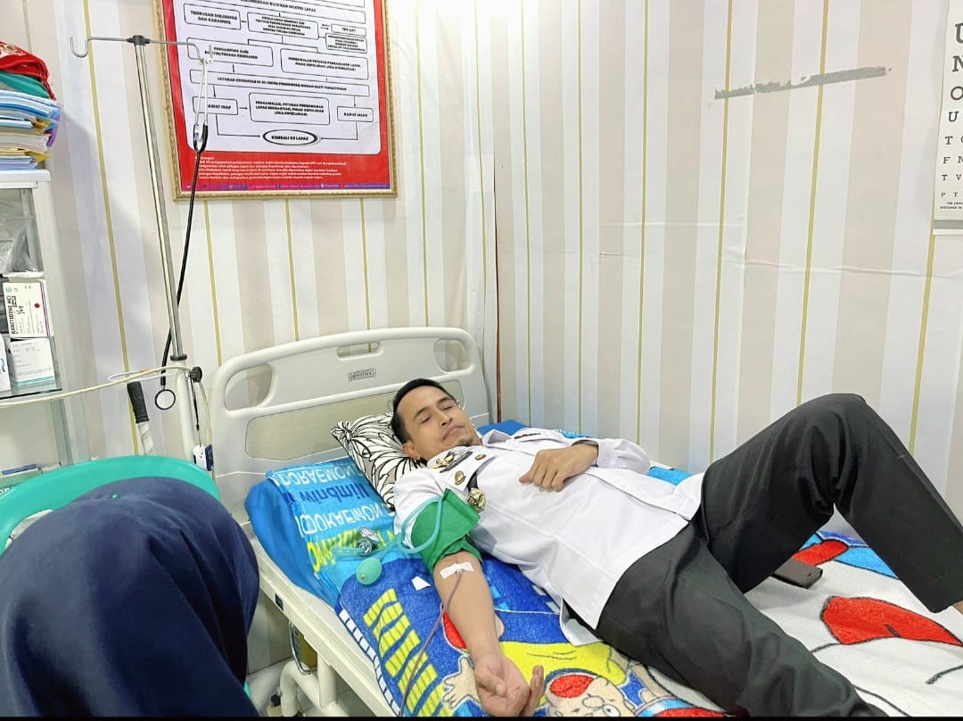 Jajaran pegawai Lapas kelas III Suliki, Kanwil Kemenkumham Sumbar ikuti kegiatan donor darah pada Rabu (16/4/24), bertempat di Lapas Suliki.