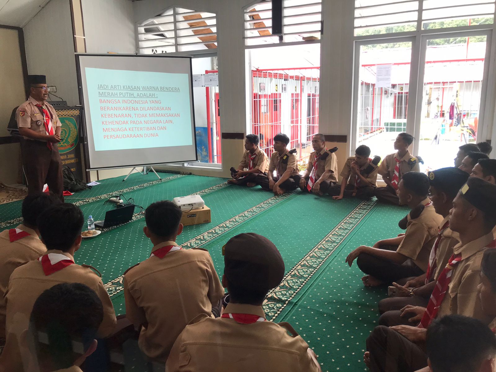 Lima Puluh Kota – Pramuka Gugus Depan 08.065 Lapas Kelas III Suliki menerima pembinaan kemandirian mengenai materi Sejarah dan Tata Cara Kepramukaan serta Kiasan Warna Bendera Merah Putih, pada Rabu, (7/6/23)