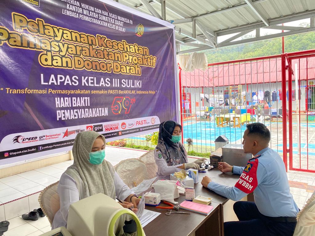 Lima Puluh Kota – Lembaga Pemasyarakatan kelas III suliki, Kabupaten 50 kota menggelar Kegiatan Donor Darah Dalam Rangkaian Acara Hari Bakti Pemasyarakatan ke-59 Tahun 2023.