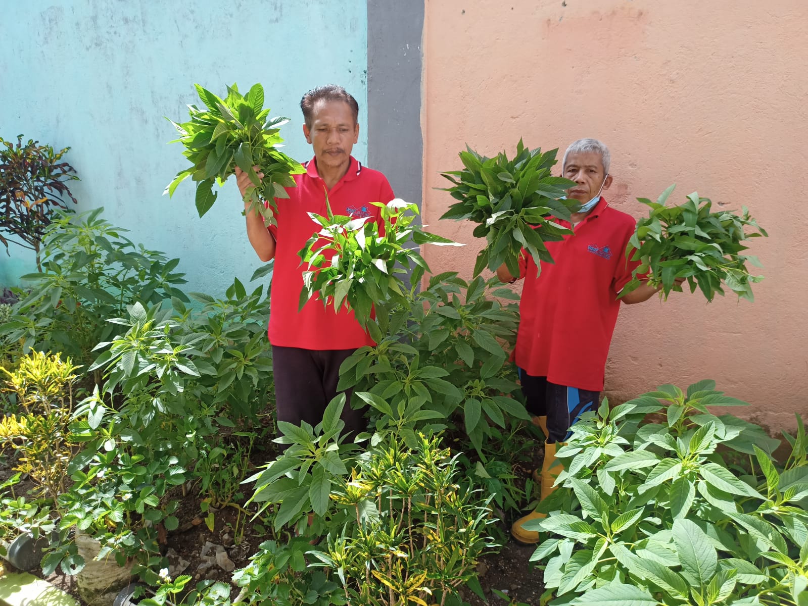 Para WBP yang bekerja memanen hasil tanam sayur Kangkung dan Bayam. Dalam hal ini memanfaatkan lahan kosong yang dimiliki untuk bercocok tanam sayur-sayuran tidak lepas dari dukungan Kalapas beserta jajarannya.